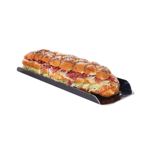Brioche amb una capa de mostassa Dijon, pernil ibèric, tomàquet i enciam.